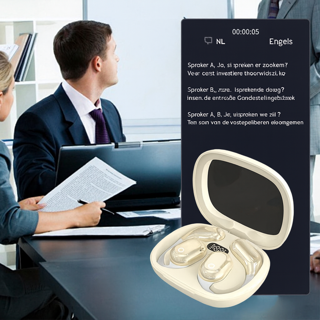Of je nu reist, werkt met internationale klanten of gewoon nieuwe mensen ontmoet — met deze AI-vertaloordopjes spreek je meteen 75 talen. Geen apps of vertaalboekjes meer nodig. Alles gebeurt direct in je oor.