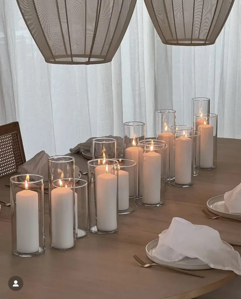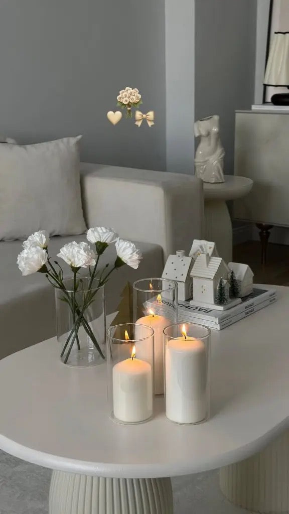 Deze cilindervormige glazen vazen zijn de perfecte combinatie van stijl, eenvoud en veelzijdigheid. Hun strakke design laat bloemen, kaarsen of decoraties volledig tot hun recht komen, terwijl het transparante glas een rustige en luxe sfeer creëert in elke ruimte.