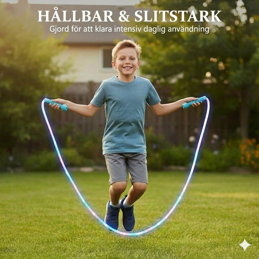 Gör varje tråkig kväll till en spektakulär fest med detta dynamiska LED-hopprep. De tre livfulla ljuslägena ser till att barnen omedelbart blir motiverade att komma upp ur soffan och börja röra på sig. Den visuella showen gör träning oemotståndligt rolig och spännande, vilket gör att ditt barn lekfullt bygger upp en god kondition utan att det känns som ett tråkigt måste. Det är det ultimata sättet att kombinera rörelseglädje med en häftig upplevelse som syns i mörkret.