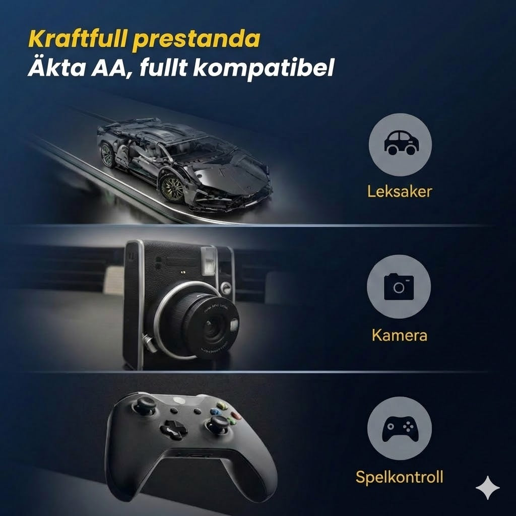 Välj ett smartare och mer miljövänligt alternativ med premiumbatterier som kan återanvändas upp till 1200 gånger. Det innebär direkt besparing eftersom du slipper köpa engångsbatterier till klockor, kameror och hushållsapparater. Den intelligenta laddningstekniken skyddar din utrustning och ger en trygg, långsiktig lösning som både löser kostnadsproblemet och minskar din miljöpåverkan – ett självklart val för den medvetna användaren.