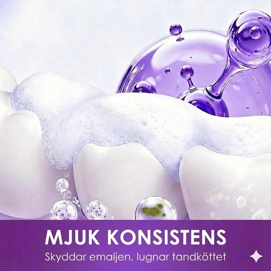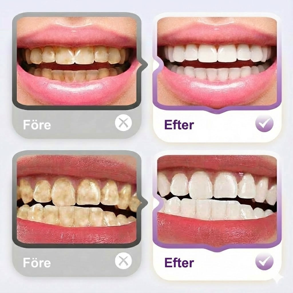 Återfå ditt självförtroende med vår innovativa färgkorrigerande formula för vitare tänder. Den unika lila nyansen neutraliserar gula toner direkt och effektivt, vilket gör att dina tänder ser omedelbart ljusare och vitare ut. Det är det absolut snabbaste sättet att uppnå ett naturligt, strålande leende utan dyra och tidskrävande tandläkarbesök, så att du kan skratta stolt på varje bild med ett omedelbart synligt resultat.