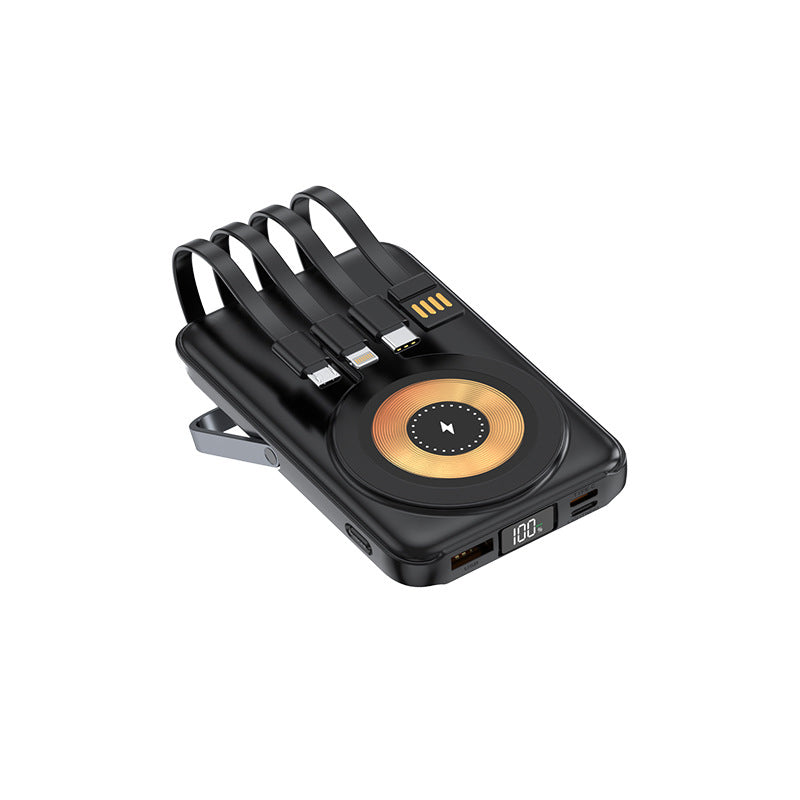 Tack vare det inbyggda vikbara stället behöver du aldrig avbryta dina aktiviteter medan du laddar. Placera din telefon horisontellt eller vertikalt för att titta på videor, videosamtal eller spela spel, medan powerbanken gör jobbet. Denna ergonomiska design ger en direkt förbättring av din användarupplevelse och håller händerna fria för andra viktiga uppgifter. Den slimmade profilen gör att enheten enkelt ryms i fickan, vilket säkerställer maximal komfort under resor eller en dag på kontoret.