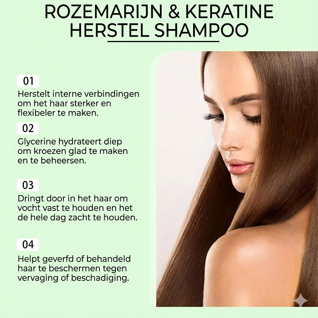 Droom je van een weelderige, volle haardos? Met deze Rozemarijn Keratine Shampoo geef je jouw haar direct een zichtbare boost in volume en vitaliteit. De krachtige werking van natuurlijk rozemarijnextract dringt diep door in de haarzakjes om de doorbloeding te stimuleren en de haargroei te activeren. Waar andere shampoos alleen reinigen, pakt deze formule dunner wordend haar bij de wortel aan, zodat je binnen de kortste keren geniet van zichtbaar dikker haar.