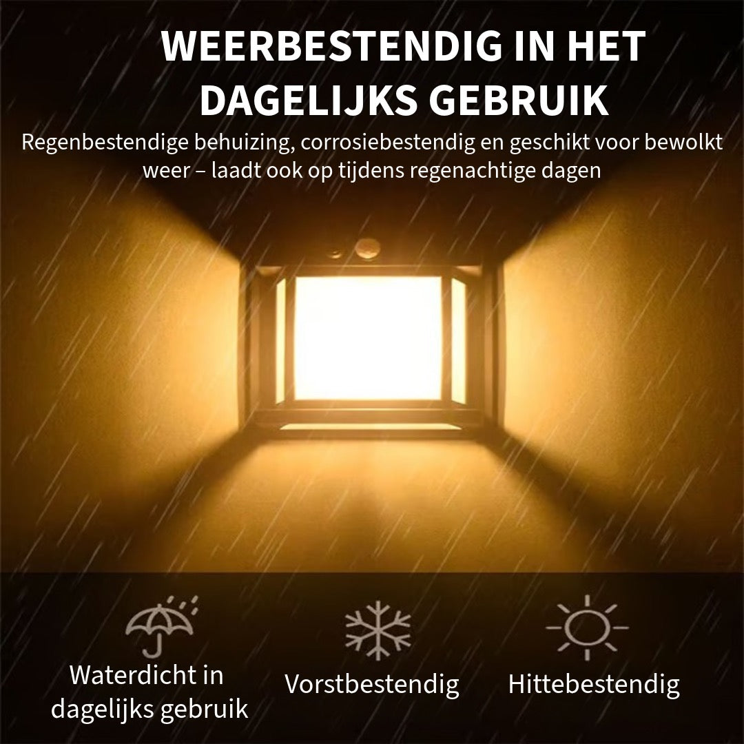 De ingebouwde bewegingssensor detecteert elke beweging tot 8 meter afstand. Dit zorgt voor extra veiligheid in je tuin, oprit of balkon. Geen zorgen meer over donkere hoeken; de lamp gaat automatisch aan wanneer dat nodig is.