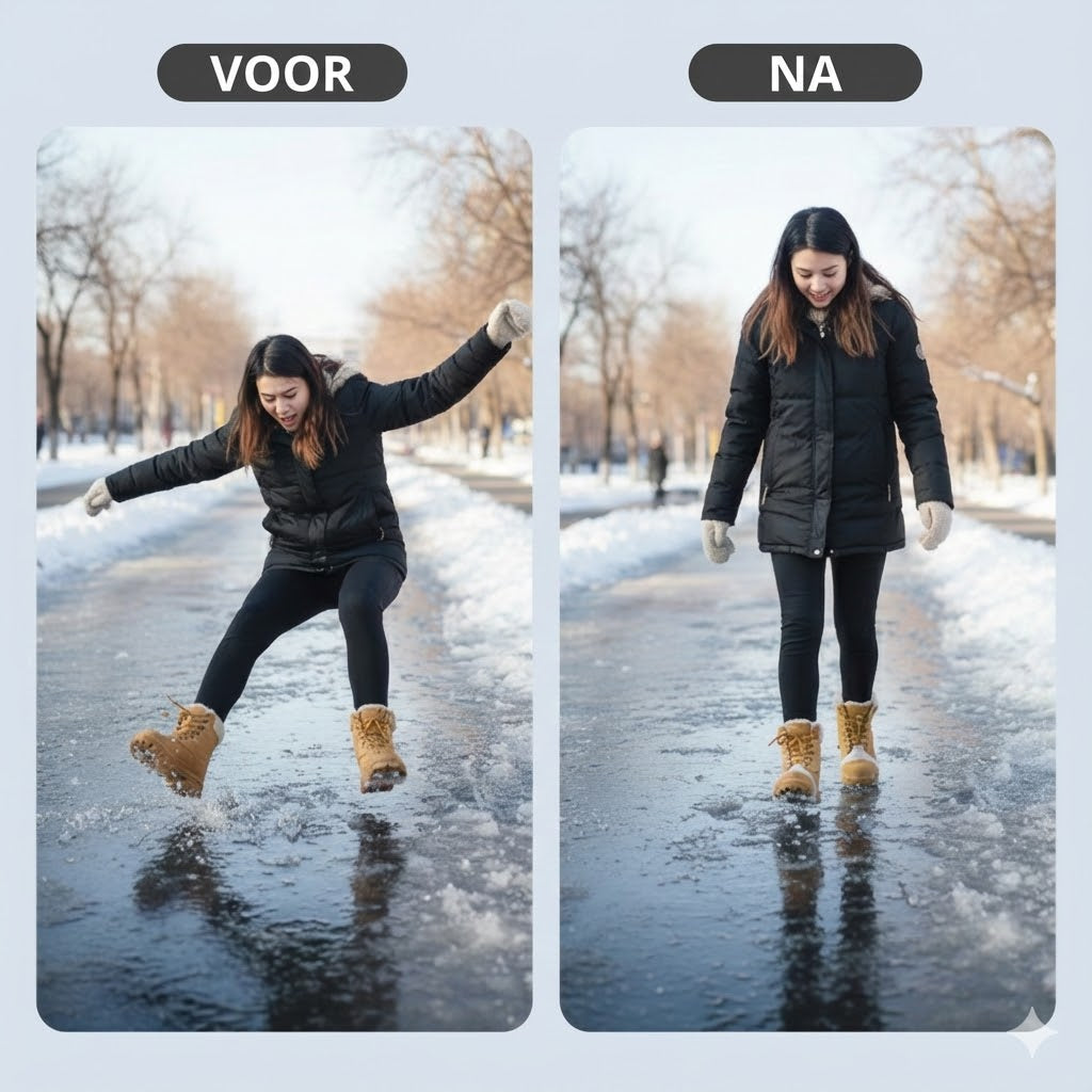 Veiligheid hoeft absoluut niet ten koste te gaan van je uitstraling. Het transparante of zwarte materiaal sluit naadloos en onopvallend aan op je schoenen, waardoor je profiteert van krachtige antislipbescherming zonder de logge look van traditionele stijgijzers. Je creëert direct een veilige loopervaring terwijl je je eigen stijl behoudt, ideaal voor dagelijks gebruik in de stad of tijdens een winterwandeling.